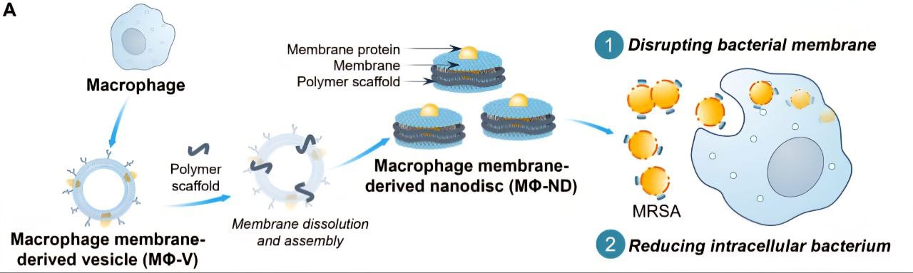 На штаммы метициллинрезистентного золотистого стафилококка (MRSA) действует все меньше антибиотиков, поэтому исследователи из США предложили альтернативный подход — использование нанодисков, полученных из клеточных мембран макрофагов (MФ-ND).
